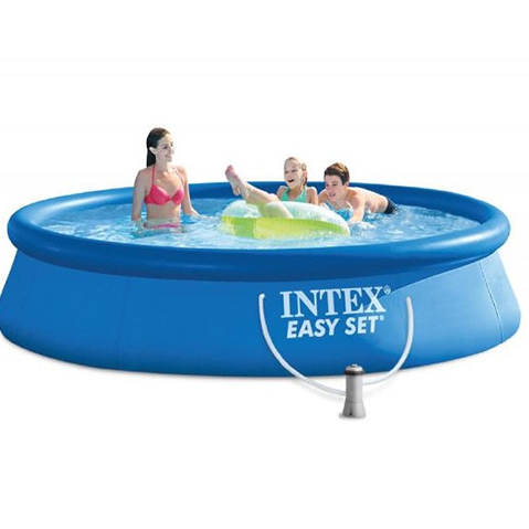 Nadzemni bazeni na naduvavanje Intex Easy Set predstavljaju fenomenalnu porodičnu zabavu u vašem dvorištu i izvanredno mjesto za opuštanje tokom vrelih ljetnjih dana. Izrađen je od izuzetno otpornog PVC materijala po originalnoj Intex tehnologiji koja predstavlja njegov zaštitni znak u svijetu. Materijal je plave boje. Bazen se puni do 80% svoje ukupne zapremine za šta je potrebno 3465 litara vode. Bazen je ekstremno jednostavan za montiranje, mnogo jednostavniji nego klasični nadzemni bazeni sa konstrukcijom od plastičnih ili metalnih cijevi. Uz pomoć jednog šrafcigera i video uputstva za montažu, ovaj bazen je moguće samostalno postaviti u svom dvorištu za svega 10 minuta. Proces montaže se obavlja u tri jednostavna koraka: