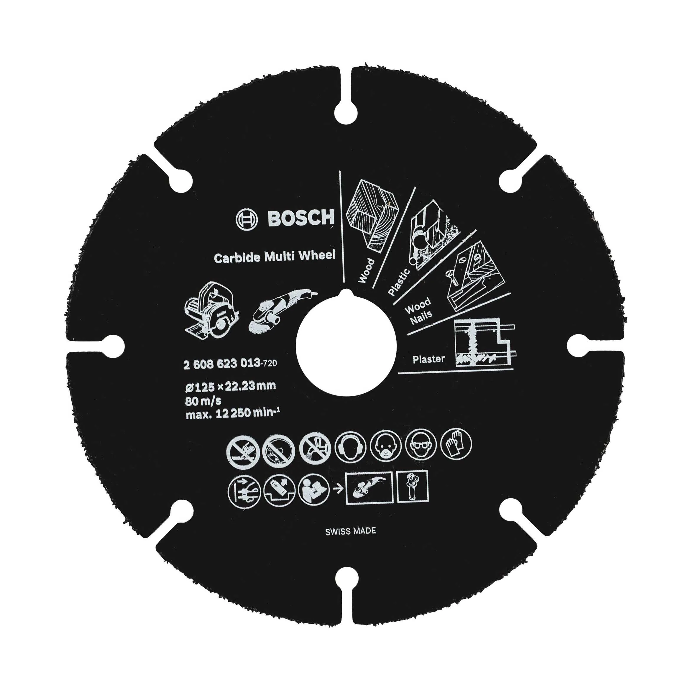 Carbide Multi Wheel pretvara ugaonu brusilicu u univerzalni alat. Ovaj jedinstveni točak je prvi na tržištu koji omogućava bezbedno, izdržljivo i lako sječenje mekanih materijala ugaonom brusilicom. Točak ima ivicu za sječenje sa karbidnim zrnima napravljenu tehnologijom topljenja laserom, pa pruža otpornost i bezbjedan radni učinak na raznim materijalima. Tanak profil i prorez za proširenje obezbijeđuju jedinstvenu brzinu rezanja i izbegavaju krivljenje lista testere. Pogodan je za primjenu na drvetu, drvetu sa ekserima, plastici, gipsanim pločama i bakarnim cijevima.